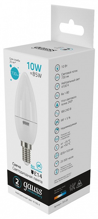 | Альтернативное название | Лампа светодиодная E14 10W 4100K матовая 33120 |
