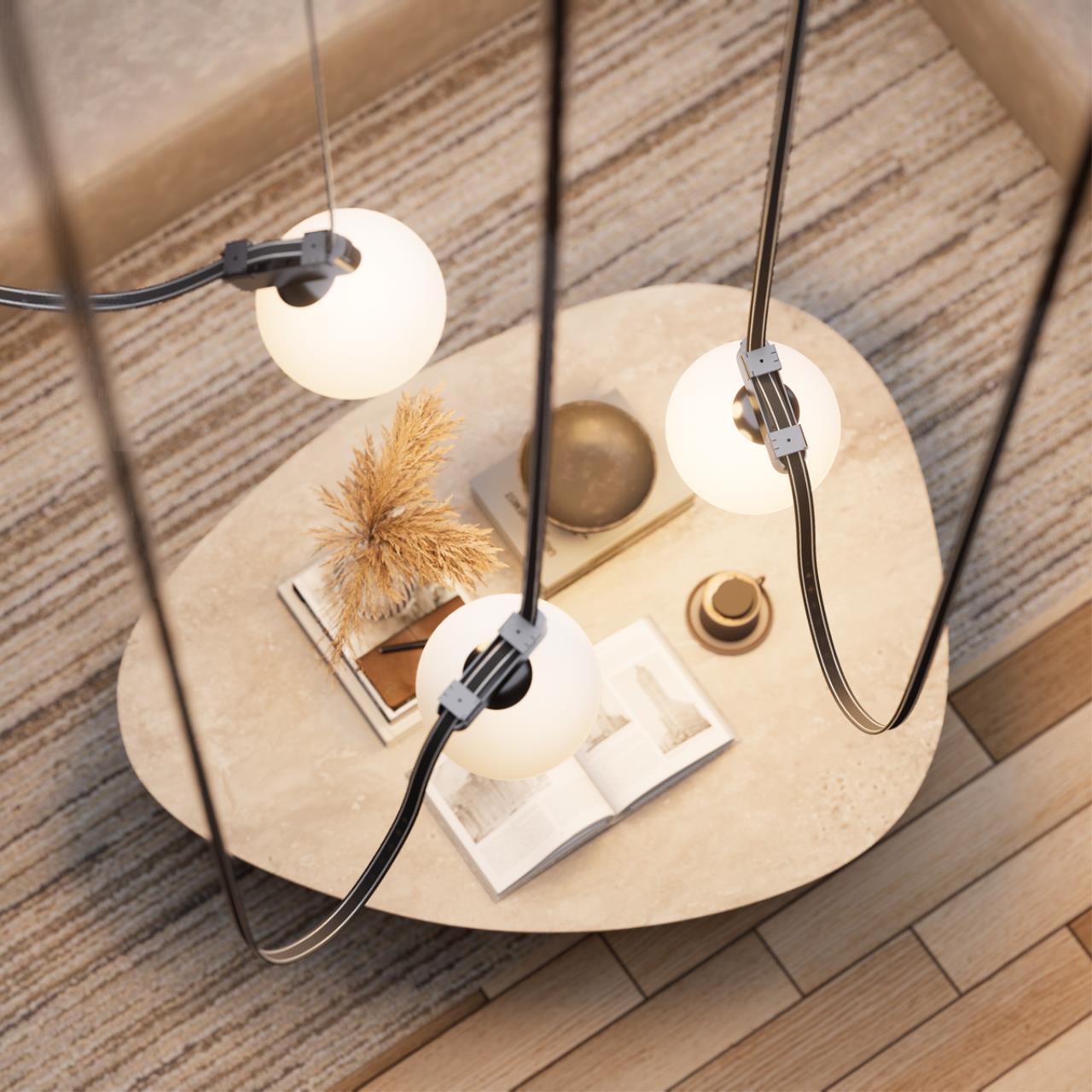 Светодиодные светильники для низковольтного шинопровода поддерживают два режима работы: «M1» и «M2». В режиме «M1» они управляются через настенный выключатель с возможностью выбора цветовой температуры. Для этого используются кнопки: «Y» — тёплый белый свет, «N» — нейтральный белый, «W» — холодный белый. В режиме «M2» доступно умное управление через приложение Smart Life или пульт дистанционного управления. В этом режиме можно диммировать свет, менять цветовую температуру и создавать сценарии освещения. Для работы светильников в этом режиме требуется контроллер (арт. 359456) и драйвер (арт. 359454–359455) либо встроенный смарт-драйвер (арт. 359453). Управление возможно как через пульт, так и через приложение Smart Life. Светильник работает на протоколе TUYA 2,4 ГГц, который не подключается напрямую к домашнему Wi-Fi. Для интеграции светильника в сеть и управления через приложение или голосового ассистента необходим умный шлюз (арт. 359457), который соединяет устройства с вашей Wi-Fi-сетью.
